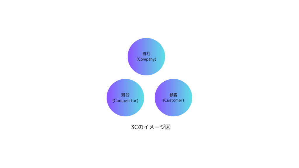 3C分析は自社(Company)、競合(Competitor)、顧客(Customer)に分けて自社の事業環境を分析するフレームワークです。